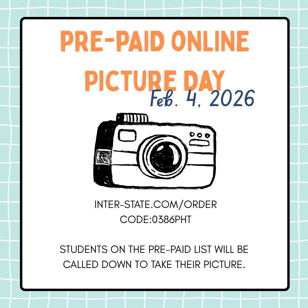 If you would like for your student to take spring picures on February 4, please pre-pay at www.inter-state.com/order.